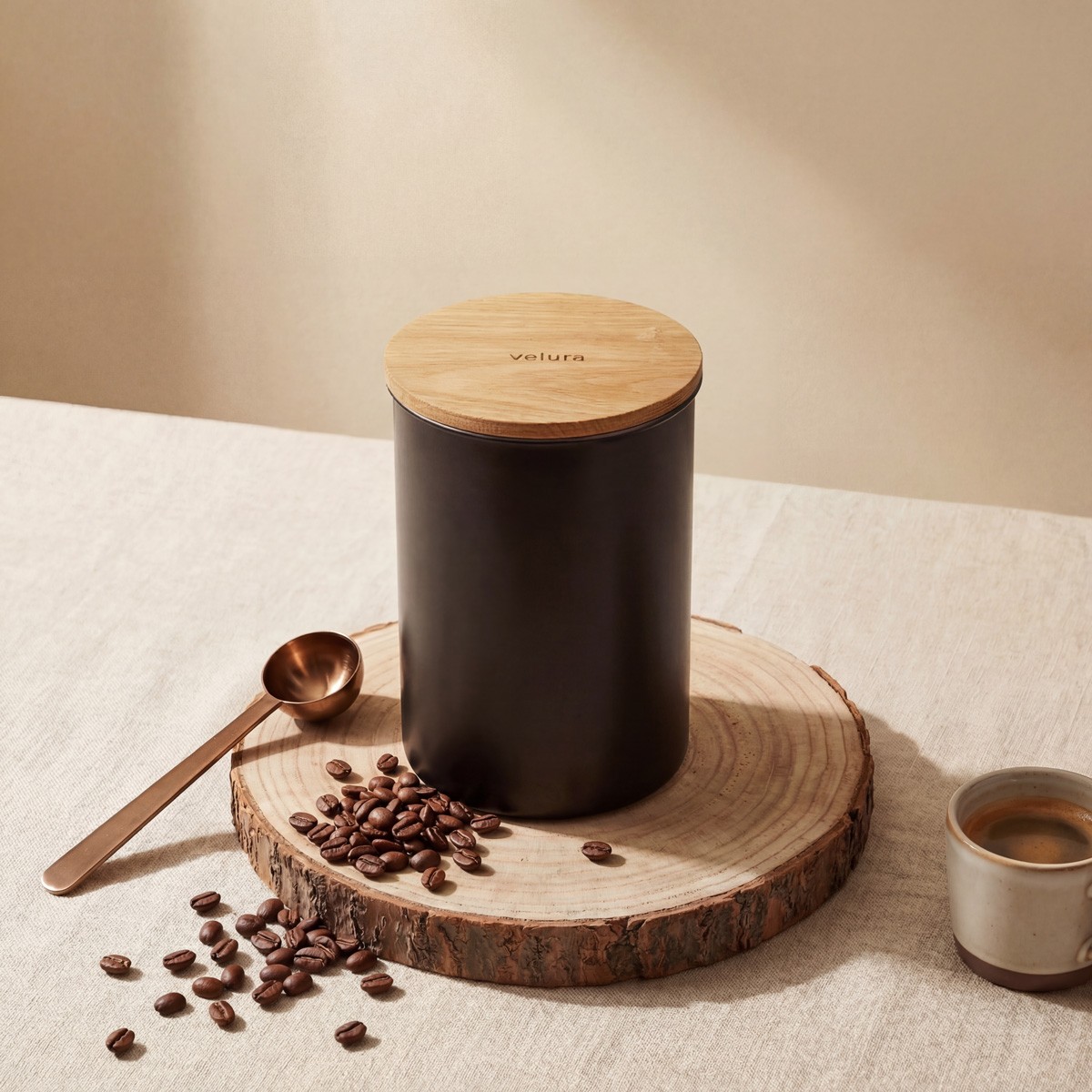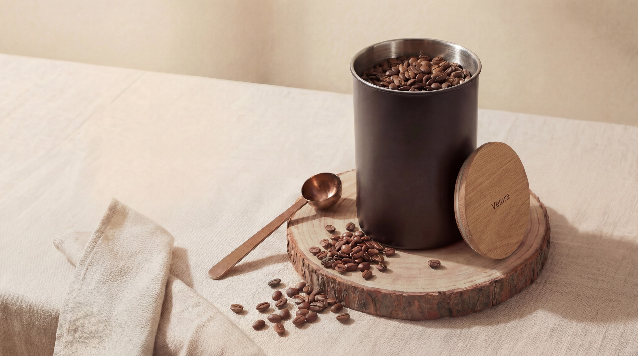 Die Idee hinter Velura ist einfach: Gute Lebensmittel verdienen auch eine gute Aufbewahrung. Gerade Kaffee verliert schnell an Aroma, wenn er nicht richtig gelagert wird. Deshalb entwickeln wir Produkte, die Funktion, langlebige Materialien und klare Gestaltung verbinden.