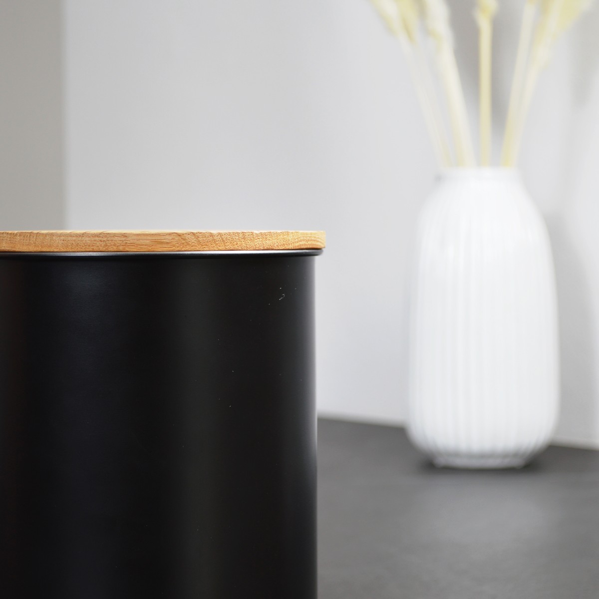Unsere Kaffeedose aus Edelstahl mit Eichendeckel wurde entwickelt, um Kaffeebohnen zuverlässig zu schützen und gleichzeitig als ruhiges, zeitloses Objekt in deiner Küche zu wirken.