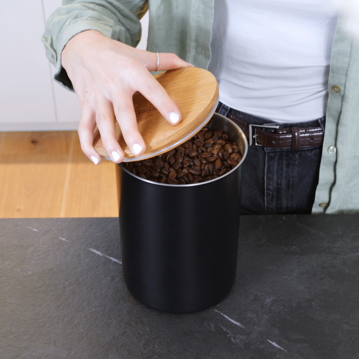 Unsere Kaffeedose ist auf Langlebigkeit ausgelegt – mit robustem Edelstahl, präziser Verarbeitung und einem natürlichen Eichendeckel.
